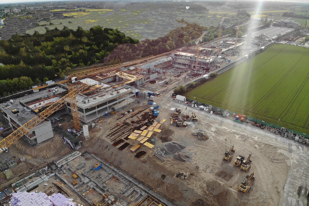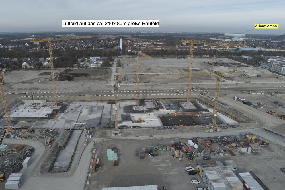 Die Bauarbeiten auf dem ca. 24.600m² großen Areal gehen zügig voran.