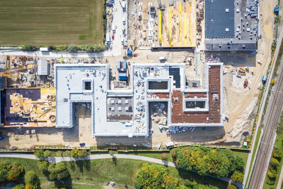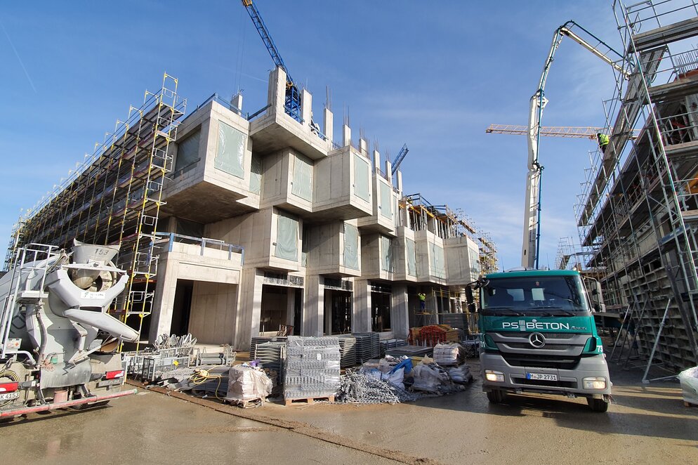 Seit Ende 2022 wird im Werksviertel am Holzhybridgebäude iCampus i8 gebaut.