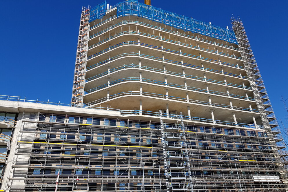 Zwischenzeitlich wurde die 5m weite Auskragung im 14. und 15. Obergeschoss des 25geschossigen Hochhauses erfolgreich…