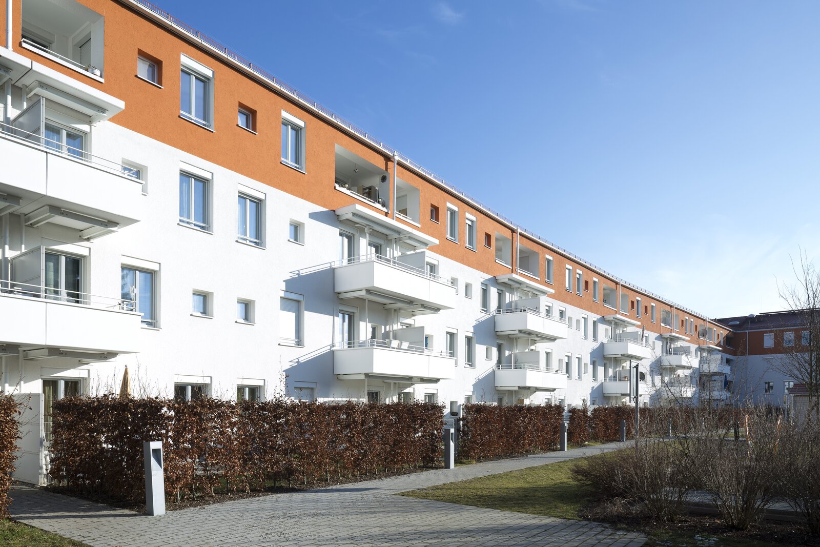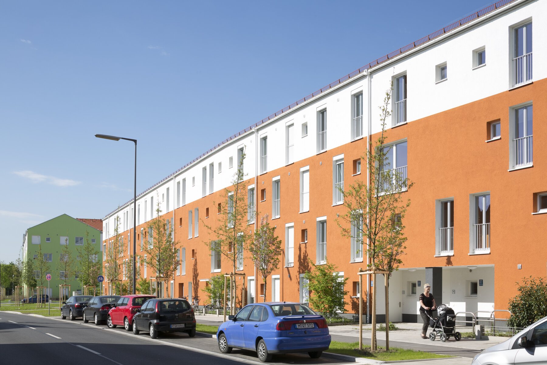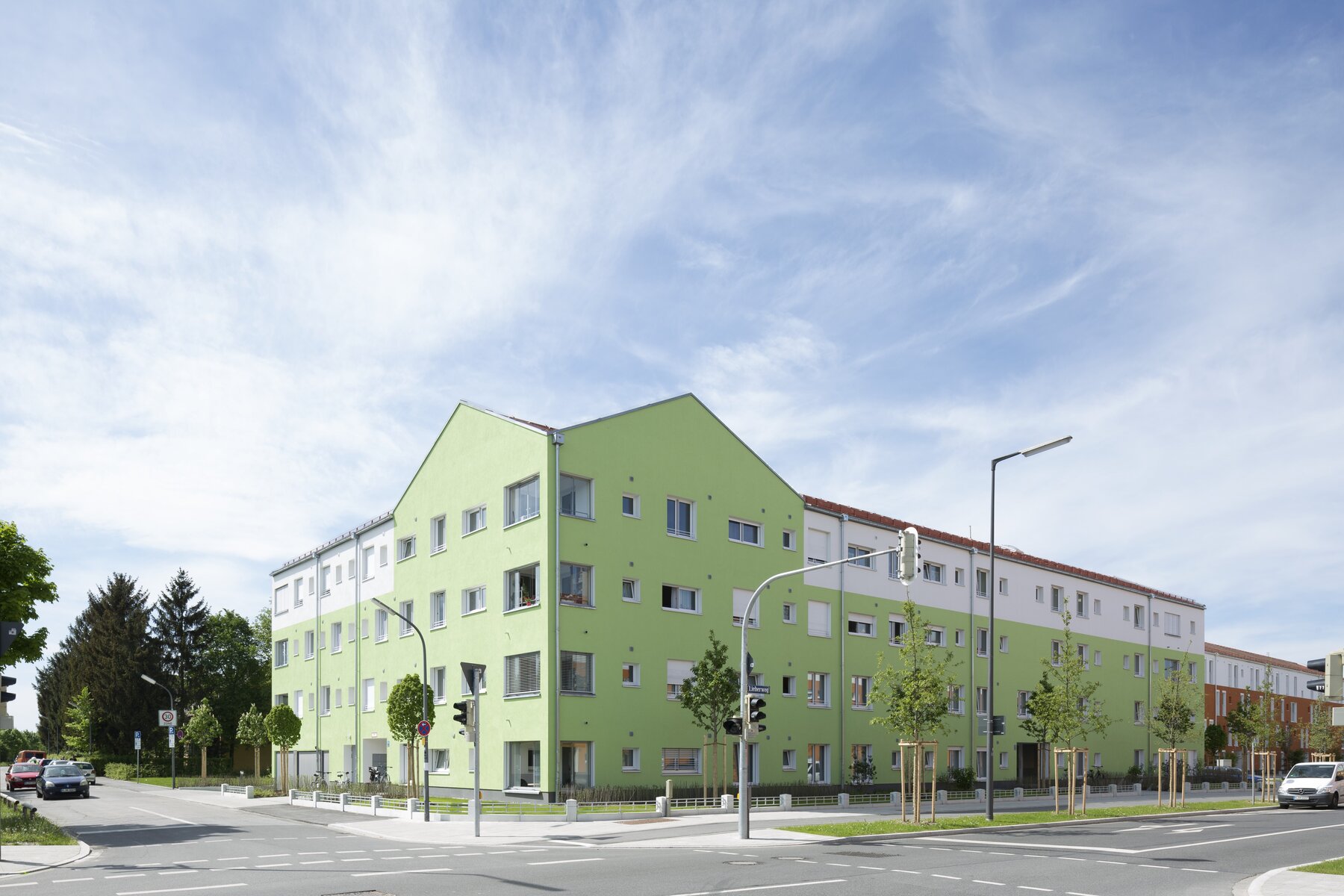 Neubau von 2 Wohngebäuden mit 65 bzw. 41 Wohneinheiten mit Tiefgarage. Massivbauweise, Wohnungstrennwände als Stahlbeton-Schotte, Innenstützen, Aussenwände in Porenbeton, Tiefgarage gepflastert, Bodenplatten Keller unbewehrt, Gründung auf Einzel- und Streifenfundamenten.