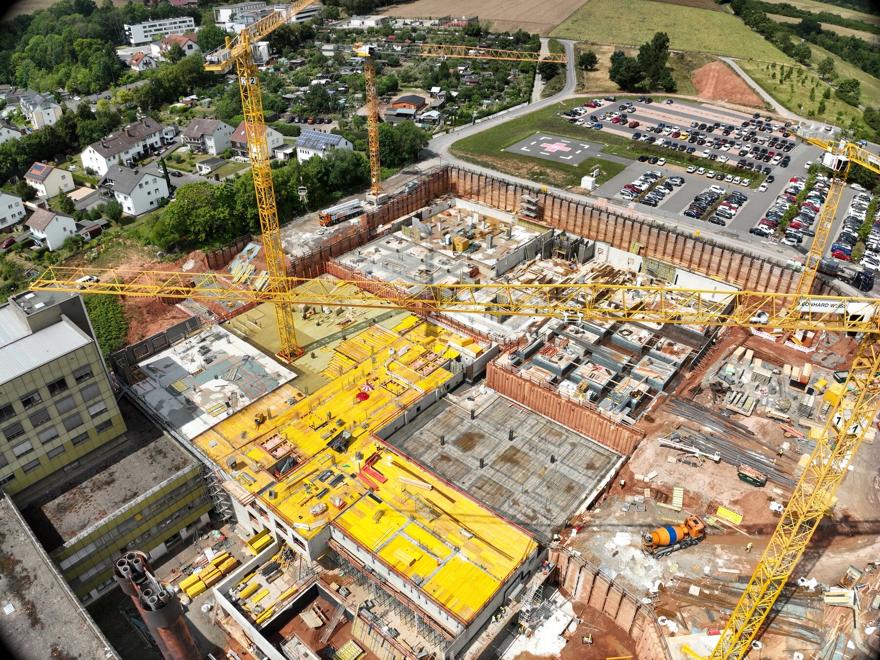 Der Erweiterungsbau entsteht nördlich des Bestands – mit rund 80 x 100 Metern Grundfläche, moderner Stahlbeton-Skelettbauweise und einem Helikopterlandeplatz auf dem Dach.