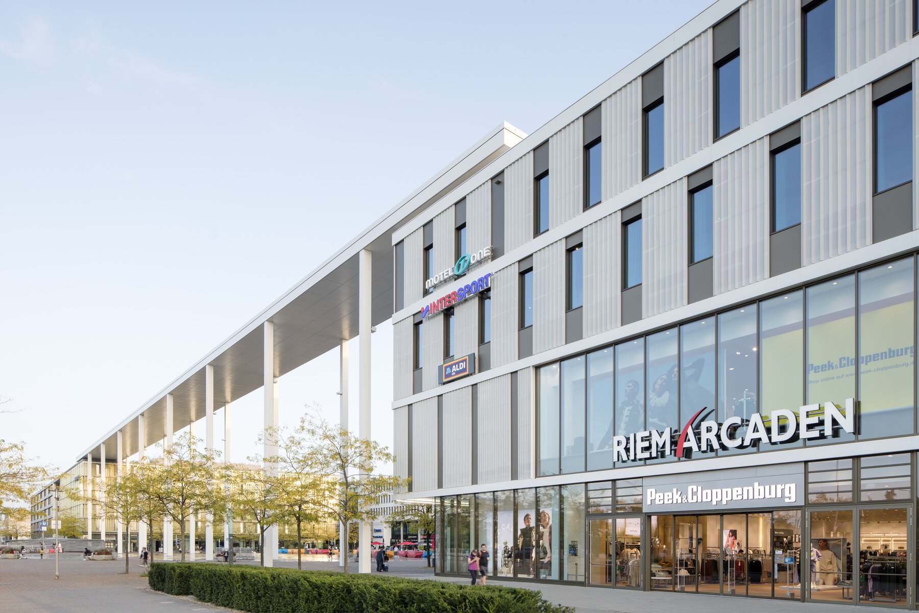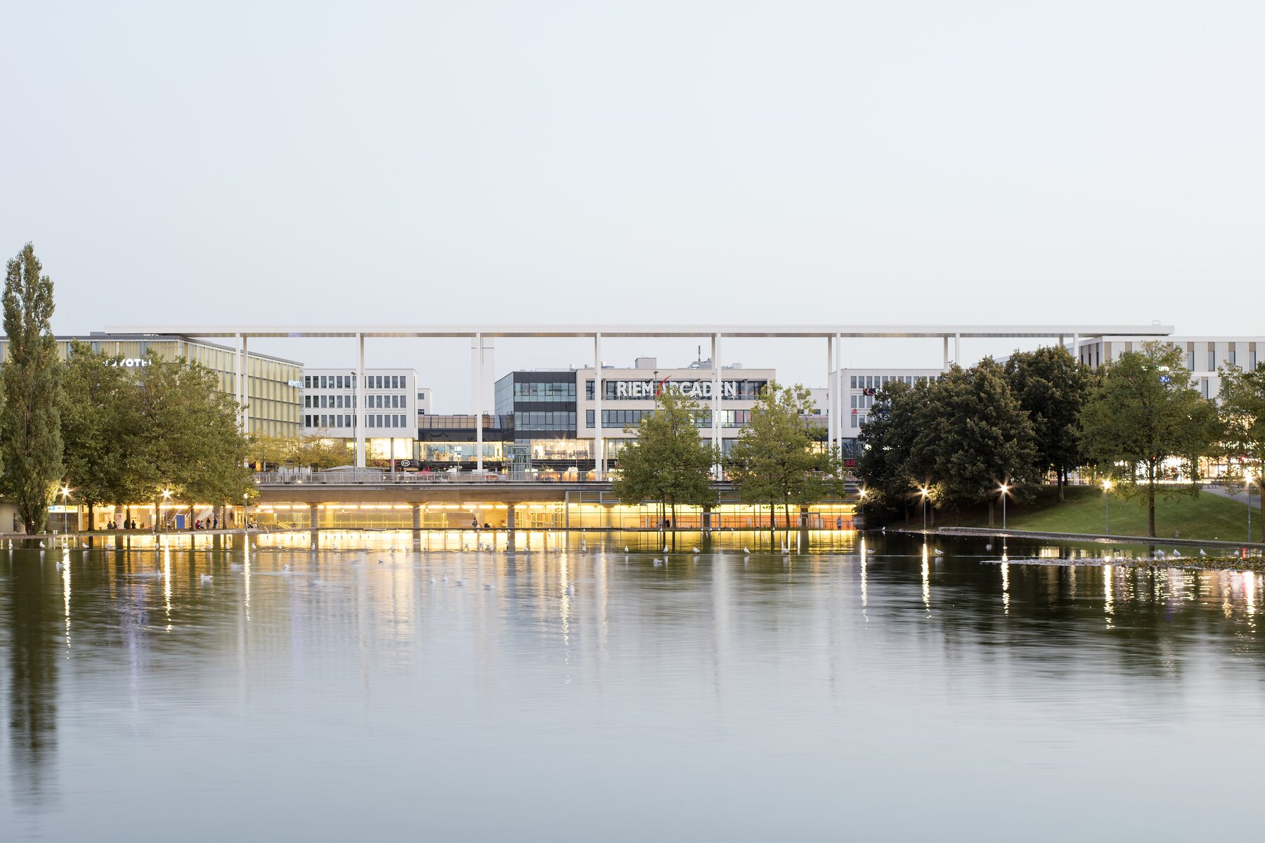Erweiterung der bestehenden Riem Arcaden und Herstellung eines neuen Hotels. Die bestehenden zwei Untergeschosse von 2001 werden durch eine neuartige, ursprünglich nicht vorgesehene Nutzung überbaut. Der Neubau wird in konventioneller Massivbauweise hergestellt. Im 1. Obergeschoss wird ein Verbindungsbrücke zu den bestehenden Riem Arcaden hergestellt.